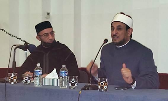 بعد التحية والترحيب بالشيخ رمضان عبد المعز في كلمة ترحيبية من طرف رئيس جمعية المسجد الأستاذ الحاج شعيب شوكري به وبالحضور رفقة الأستاذ نورالدين العيادي إمام المسجد الذي قام بالترحمة بالفرنسية لغير الناطقين بالعربية لتسهيل الفهم و إشراك الجميع في المحاضرة.