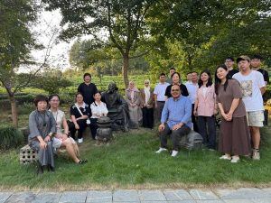 التقى وفد المعهد بعدد من قيادات الجامعة، من بينهم الأستاذ وو جيانشينغ رئيس الجامعة، والأستاذة وانغ شوفنغ العميدة الفخرية لمعهد التراث الثقافي غير المادي، والأستاذة وانغ لي مديرة مكتب الشؤون الدولية، والأستاذ جيانغ تينغ نائب مدير قسم العلوم الإنسانية، إلى جانب أساتذة من كلية علوم وثقافة الشاي.