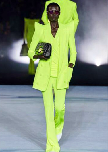 في بداية دخول الألوان الفاقعة عالم الأزياء في الثمانينات ماكنت مقبولة لشريحة كبيرة من الناس وكانت تدل على رخص ورداءة الذوق وعلى إن الشخص سمعته سيئة!! لأن الملاهي الليلة كانت تستخدم اللافتات والاضاءة بالألوان الفاقعة لجذب الناس لكن في التسعينات الوضع اختلف تماما وصارت الألوان الفاقعة مكتسحة عالم الفاشن.