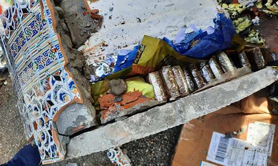 وقد مكنت إجراءات المراقبة الحدودية وعمليات التفتيش من ضبط المخدرات المحجوزة مخبأة داخل مجسم لنافورة تقليدية مغطى بالزليج وسط الامتعة داخل السيارة التي كانت تستعد للمغادرة على متن رحلة بحرية متوجهة إلى اسبانيا.